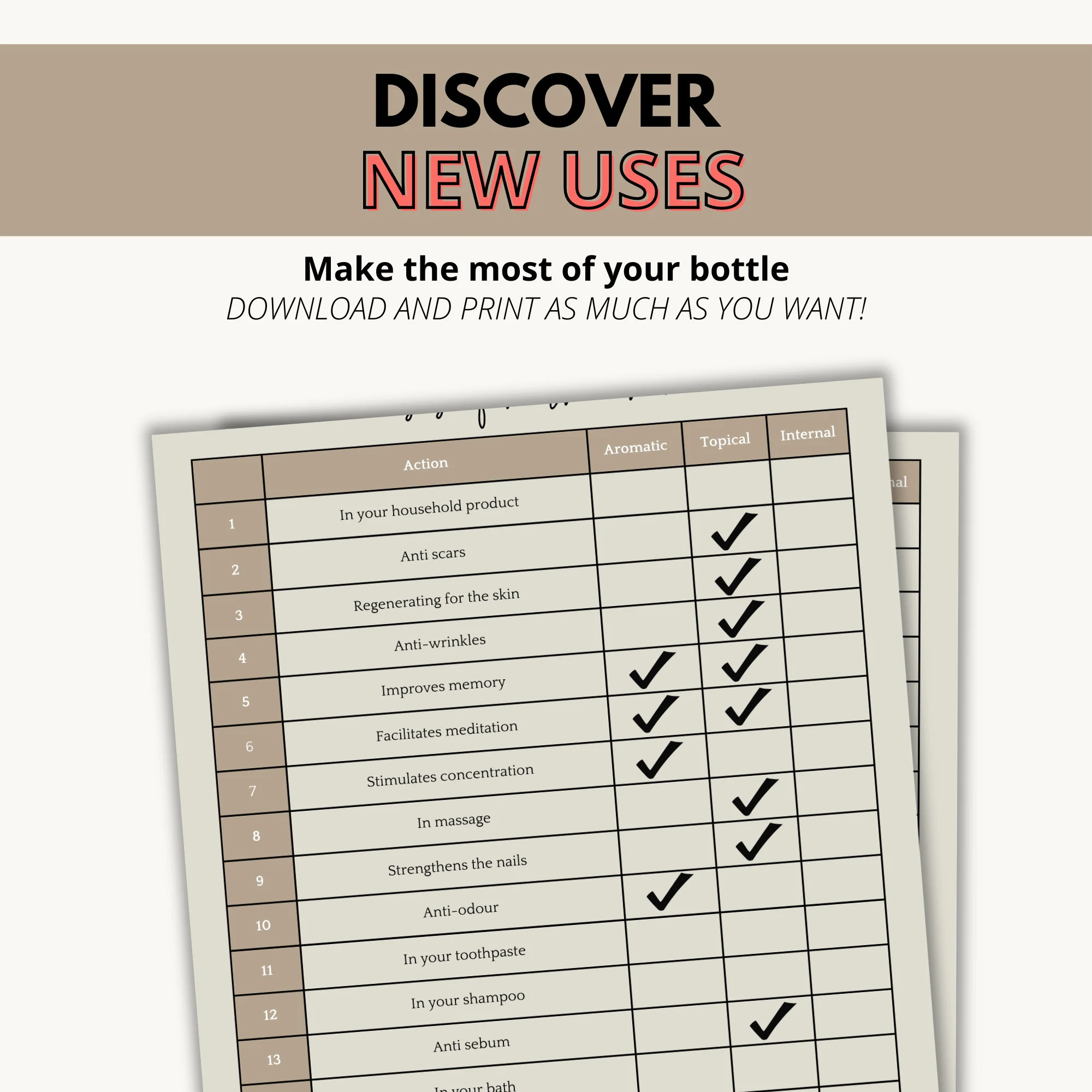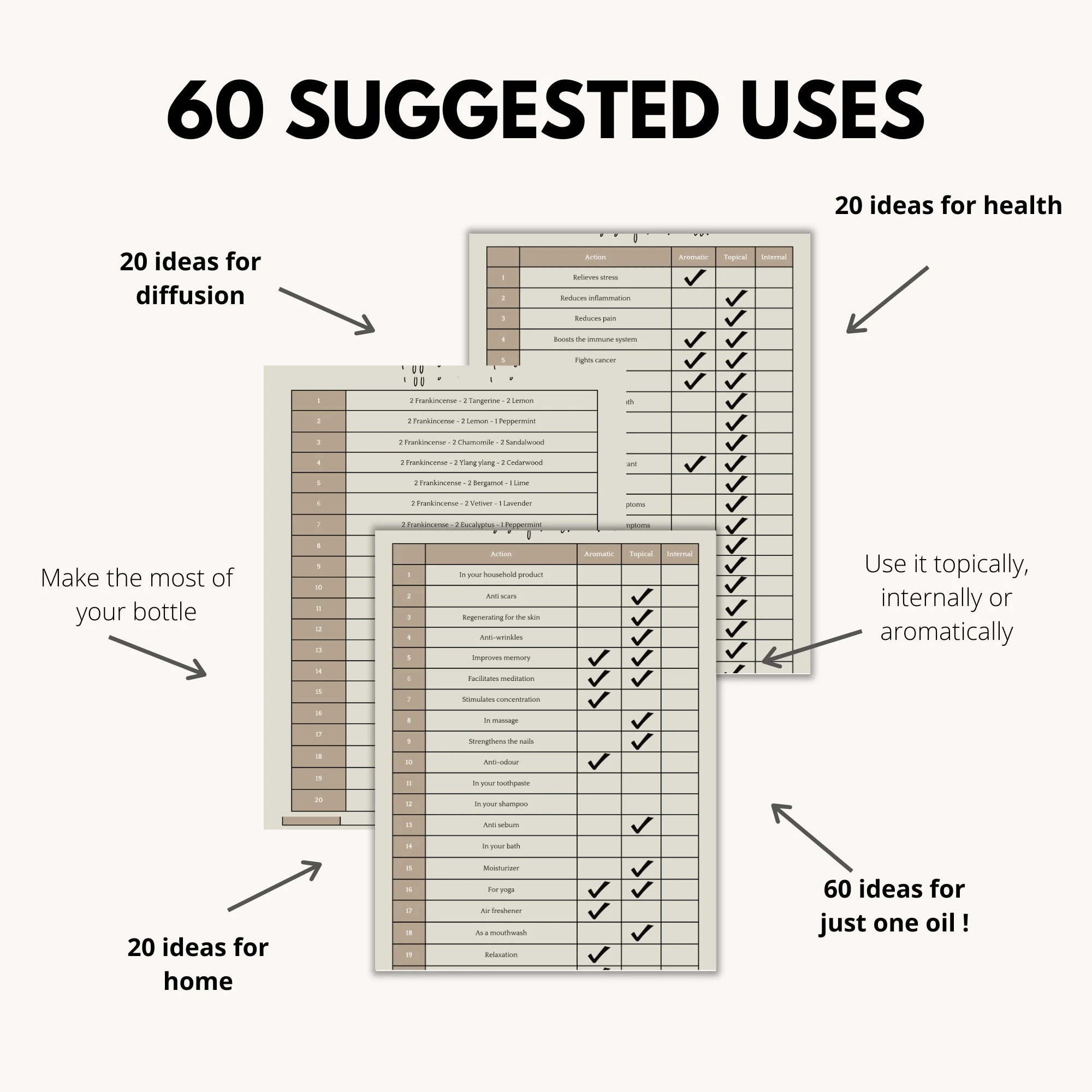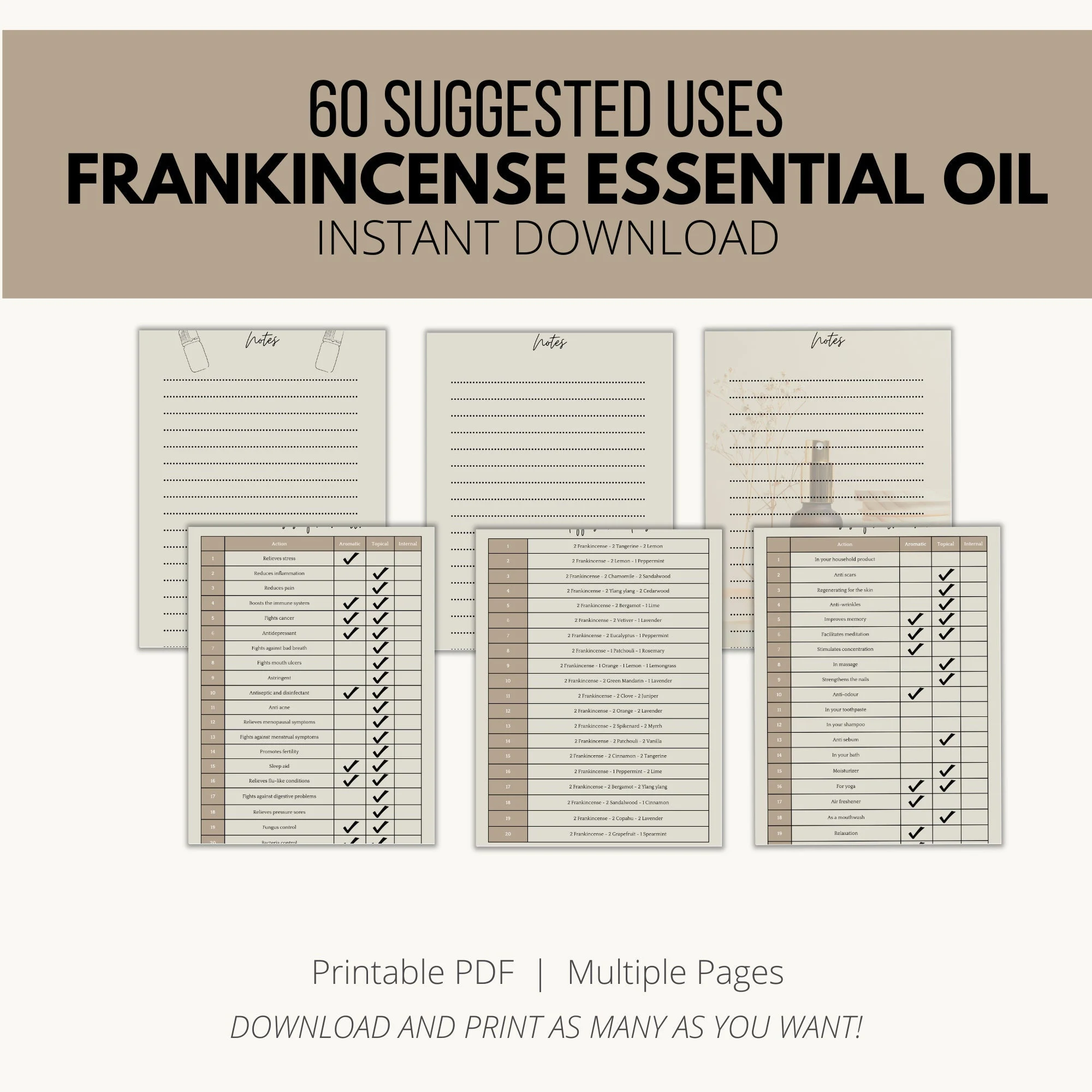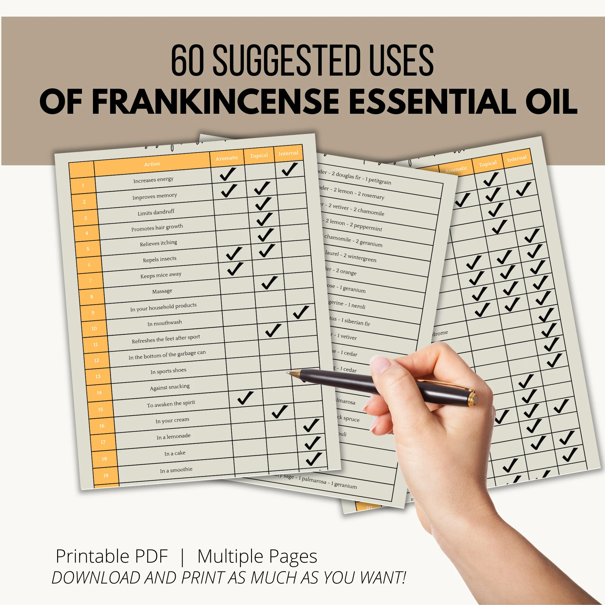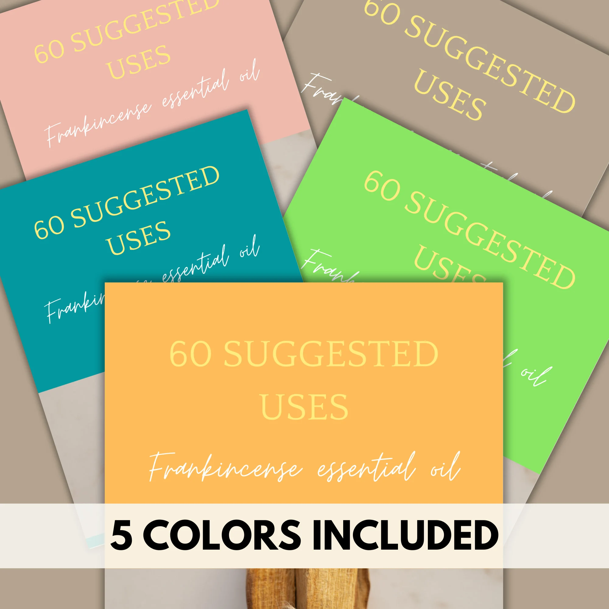 Looking for ideas on how to use your frankincense essential oil? Look no further than this helpful guide! This sheet offers 60 suggestions for using frankincense essential oil, broken down into 20 for health, 20 for home, and 20 for diffusing blends. It’s a great resource to keep on hand so you can always get the most out of your bottle. Plus, it’s available in five trendy colors – blue, pink, orange, green and brown- so you can choose the one that best suits your style.