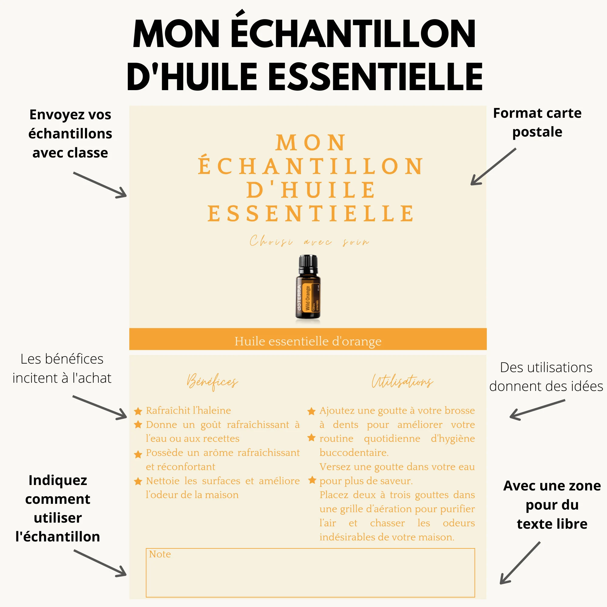 Conseiller bien-être, vous voulez que vos échantillons d’orange vous apportent des clients ? Cette carte postale téléchargeable est pour vous !